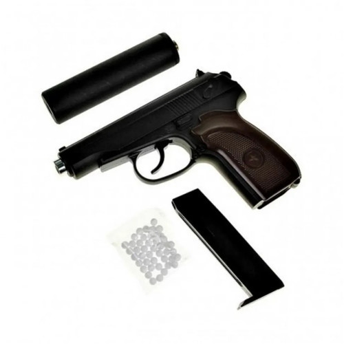 Комплектация: пистолет, глушитель, упаковка пулек.