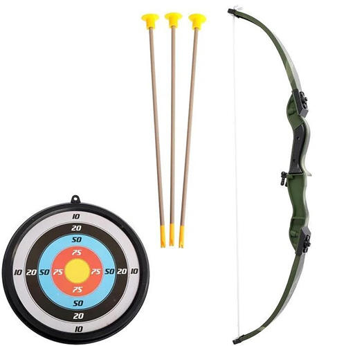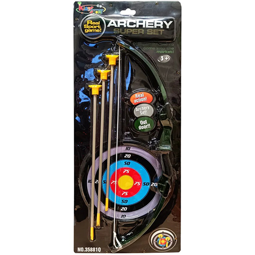 - Детский лук абсолютно безопасен для детских игр, т.к. стрелы имеют наконечники в виде присосок. Это нисколько не помешает попасть прямо в цель и похвастаться перед родителями.