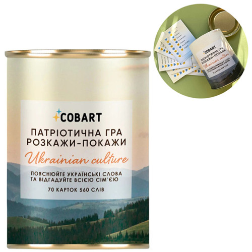 Покупая продукты от Сobart, вы поддерживаете украинского производителя и способствуете развитию нашей национальной культуры. Каждая покупка является важным шагом в сохранении и популяризации нашего украинского наследия. Приглашайте своих близких, друзей и коллег, чтобы вместе насладиться игрой, объединяющей развлечение, обучение и поддержку украинского. Расширяйте свои знания о нашей стране и языке, весело проводите время вместе и оставайтесь с нами на долгие годы!