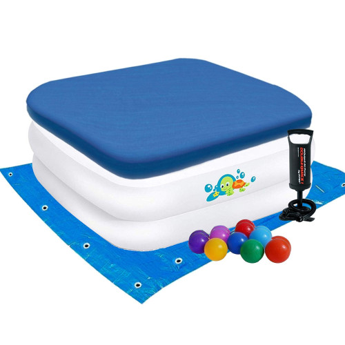 • Дитячий надувний басейн Bestway 51116-3, білий, 86 х 86 х 25 см, з кульками 10 шт, підстилкою, насосом, тентом