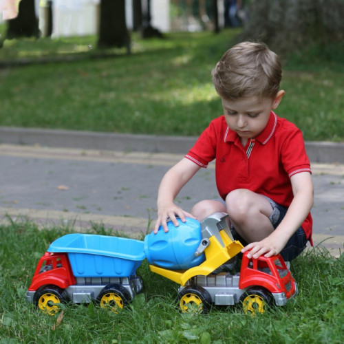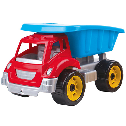 Большая, прочная пластиковая игрушка. Стильный грузовик современного дизайна. Устойчив к воздействию неблагоприятных погодных факторов – дождя, снега, низких температур. Машинка функциональная: кузов самосвала поднимается и опрокидывается назад. Можно играть дома и брать с собой на прогулку. Спереди на бампере есть отверстие для крепления веревочки.