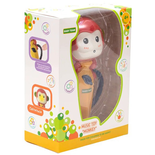 Музыкальная игрушка Baby Team Обезьянка непременно порадует вашего ребенка. Особенности и преимущества: игрушка в виде обезьянки со световым эффектом привлечет внимание малыша и очарует всевозможными мелодиями; развивает координацию движений, концентрацию, внимание, мелкую моторику, слух и восприятие; изготовлена из высококачественных и безопасных материалов, а также не содержит вредных веществ и бисфенол А.