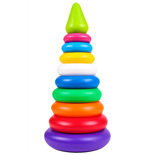 Классическая весёлая пирамидка с цветными кольцами, которые нужно нанизывать на ось. Поможет малышу изучить цвета и размеры.