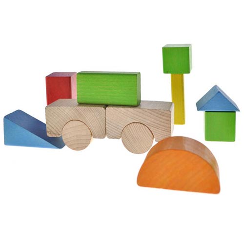 Эко игрушка деревянные кубики - первая игрушка малыша. Объемные геометрические фигуры, башни, замки, мост и даже ракета - из этого небольшого набора кубиков можно собрать немало моделей. На коробке размещено 15 схем для сборки.