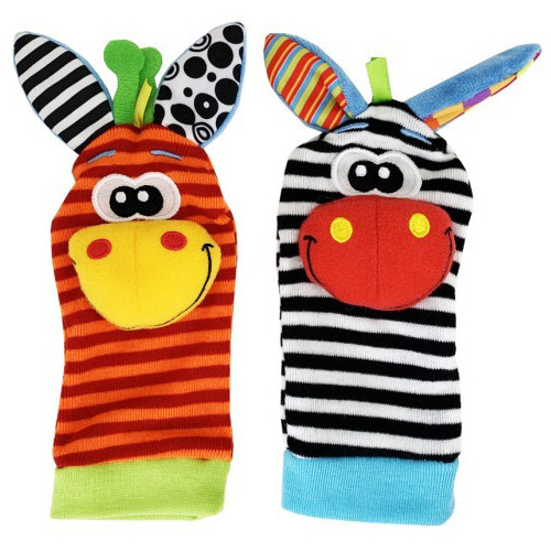 Детские носки и погремушки на запястье Sozzy изготовлены из натуральных материалов. Внутри погремушки, издают шум при встряхивании. Носки-игрушка будем стимулировать ребенка самостоятельно играть, тянуться и хвататься, улучшает координацию рук и глаз ребенка, а также его моторные навыки. Яркие цвета помогают стимулировать зрение малыша. Отличная игрушка для развития внимания и побуждает малыша к открытиям. Отличный подарок для будущей мамы. Эти игрушки понравятся и малышам и родителям.