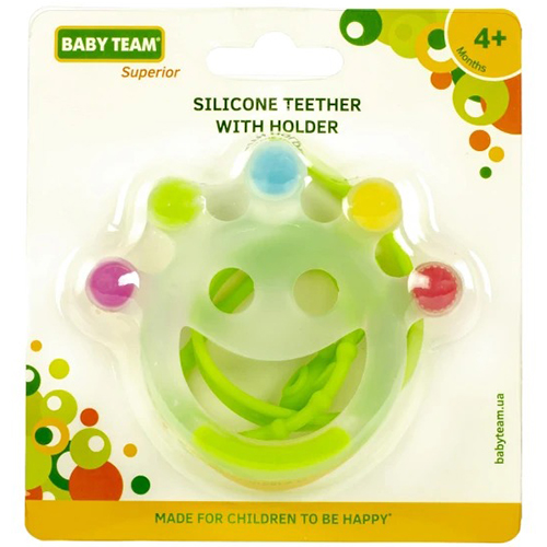 Прорезыватель силиконовый Baby Team Веселое кольцо с рельефной поверхностью уменьшает дискомфорт, эффективно растирая десны ребенка и отлично подойдет в период прорезывания первых зубчиков.