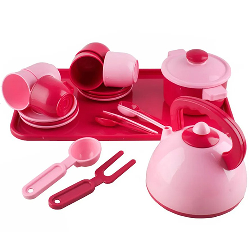 Посуда для детской кухни Юника 70309 P с чайником, кастрюлей и подносом (70309 Pink-RT)