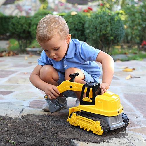 Встречайте яркие тракторы, которые станут жемчужиной любого автопарка игрушечной спецтехники. Тракторы добротные, изготовленные из прочной пластмассы, надежные и одновременно мобильные. Стойкие «гусеничные» колеса хорошо прокручиваются, поэтому игрушка движется довольно быстро. Ковш игрушечных тракторов регулируется с помощью специального рычага. В поднятом положении стрела с ковшом фиксируется. Играть этими тракторами ребенок сможет как дома, так и на улице, в песочнице, во дворе, в саду или в парке. Универсальность цветовой гаммы изделий делает игрушки интересными для мальчиков и девочек.