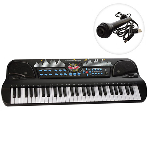 В наборе предусмотрен кабель для зарядки, а также микрофон. Оригинальное, реалистичное оформление с кнопочками, черно-белыми клавишами без острых углов, привлечет внимание Вашего ребенка и вызовет у него море положительных эмоций.