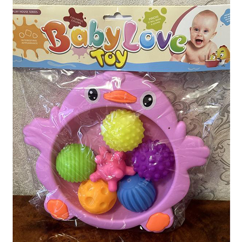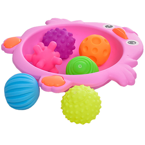Набор игрушек-пищалок для купания Bambi 916-48 P, Птичка и 6 мячиков, Розовый (916-48 Pink-RT)