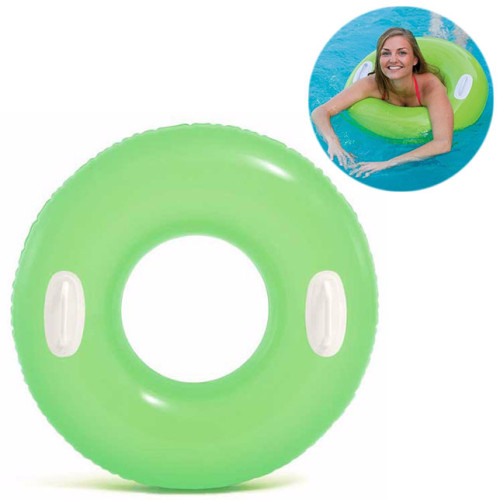 Надувной круг Intex зелёного цвета — практичный и удобный аксессуар для отдыха на воде. Лаконичный дизайн делает его универсальным выбором как для бассейна, так и для пляжа.