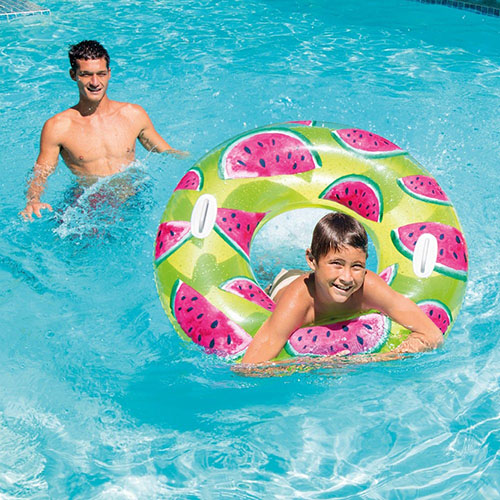Яркий надувной круг Intex с сочным принтом арбуза — стильный и удобный аксессуар для отдыха на воде. Прозрачная розовая основа с реалистичными ягодами придаёт ему эффектный летний вид и сразу выделяет среди других аксессуаров.