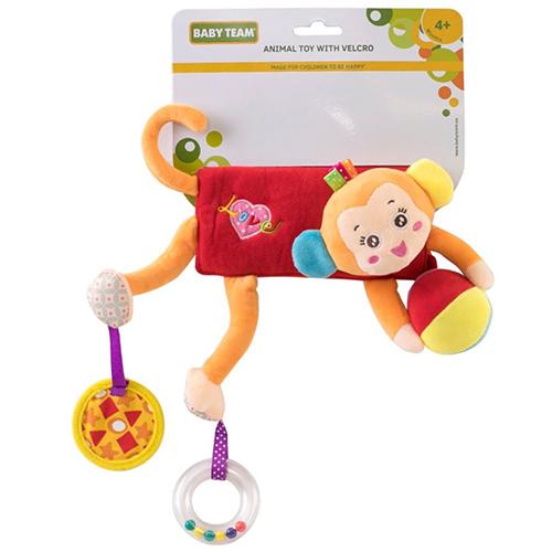 Развивают концентрацию внимания, мелкую моторику, тактильные ощущения, координацию движений и цветовое восприятие. Игрушка крепится на кроватку или на коляску с помощью липучки. Изготовлена из яркой ткани, имеет зеркальце и другие развлечения. Игрушки Baby team изготовлены из высококачественных и безопасных материалов, а также не содержат вредных веществ и Бисфенол А.