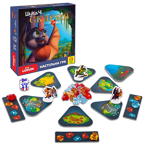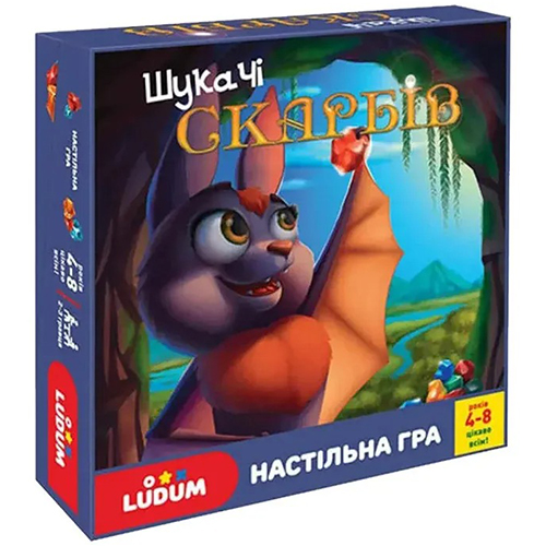 Летучая мышка, пролетая над городом, растеряла драгоценные камешки. Теперь это сокровище может находиться в любом уголке города или его окрестностях. Кому удастся их найти?" Принцип игры: бросай кубик, путешествуй и собирай сокровища.