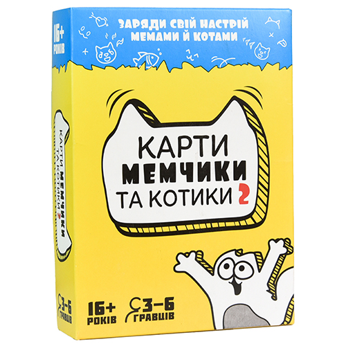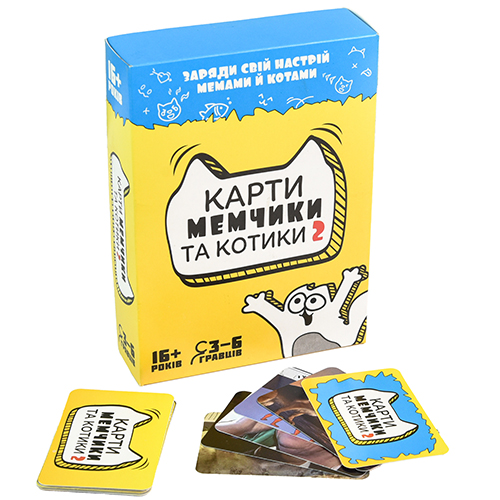 Легендарное продолжение игры «Карты, мемчики и котики» - это настоящий патриотический фестиваль украинского юмора. Цель этой игры создавать свои собственные мемы и наслаждаться весельем из готовых шуток. Игроки получают карточки с различными изображениями, текстами или шутками, которые можно использовать для создания собственных мемов или рассказов. Это идеальная игра для вечеринок или встреч с друзьями, где можно наслаждаться множеством смешных моментов и креативных впечатлений. Соберите свою компанию друзей, готовьтесь к множеству смеха и невероятных впечатлений с «Картами, мемчиками и котиками 2».