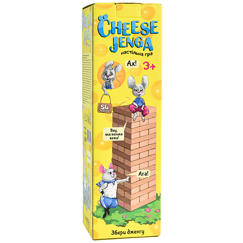 «Cheese Jenga» - это культовая настольная игра, которая станет отличным дополнением к вашей компании. В ней игрокам надо удалять блоки из башни и ставить их наверх таким образом, чтобы башня не упала. Игра развивает внимательность и логическое мышление, а еще это интересно и очень весело. Забудьте о скучных вечерах - приглашайте друзей и семью, и проводите незабываемое время вместе с «Cheese Jenga» от Strateg!