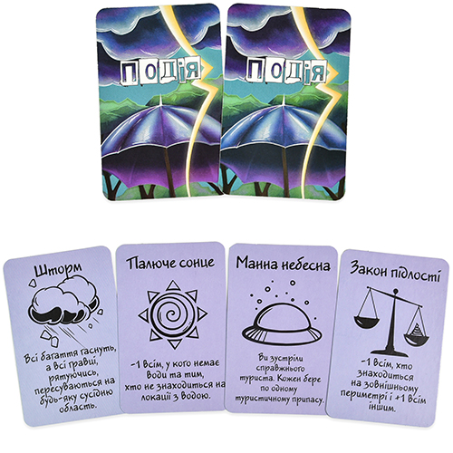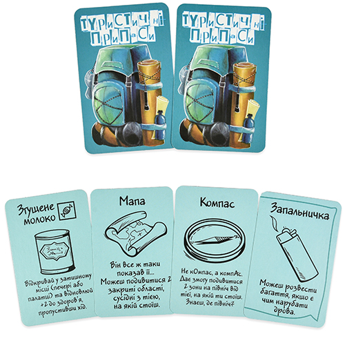 • Комплектация: коробка, игральные карты - 99 шт., поля - 25 шт., планшетки персонажей - 4 шт., фишки - 8 шт., жетоны - 40 шт., фигурка костра - 8 шт., фигурка воды -14 шт., дрова - 8 шт., песочные часы - 1 шт., инструкция.