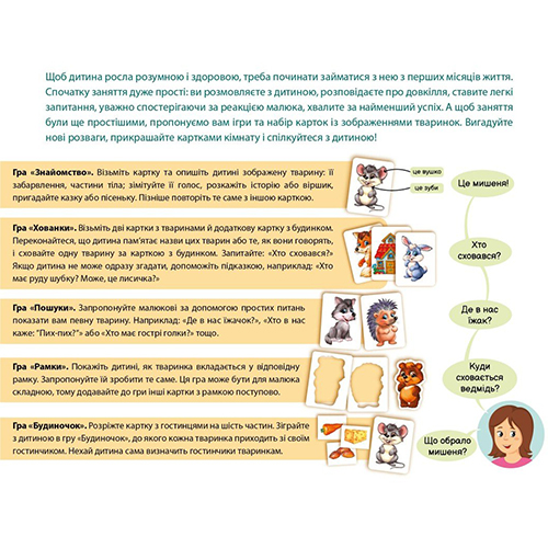 Эмоциональное общение со взрослым является необходимой основой для гармоничного и всестороннего развития младенца, так что игры и набор карт «В лесу» являются прекрасным пособием для заботливых родителей. Знакомясь с животными - обитателями леса, малыш будет поэтапно познавать окружающий мир, будет развиваться всесторонне и гармонично. Создавайте у ребенка радостное настроение, повышайте его активность, ибо это – необходимая основа для развития движений, восприятия, мышления, речи.