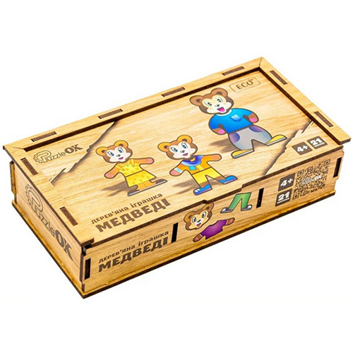 Деревянная одевалка PuzzleOK Puz-42141 Мишки, 3 фигурки (Puz-42141-RT)