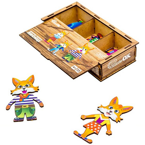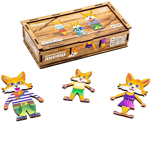 Деревянная одевалка PuzzleOK Puz-42121 Лисички, 3 фигурки (Puz-42121-RT)