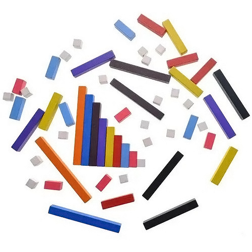 Деревянные счетные палочки по методике Кюизенера - это универсальный дидактический материал для развития математических способностей у детей. Называют их по-разному - набор палочек для счета, числа в цвете, цветные палочки, цветные числа. Набор состоит из 56 деревянных палочек 10 разных цветов с сечением 10х10 мм, которые отличаются длиной и цветом. Палочки одной длины выполнены в одном цвете. Чем больше длина палочки, тем больше числовое значение она выражает. Самая маленькая палочка («единица») длиной 10 мм обозначает цифру 1, каждая следующая длиннее на 10 мм и обозначает следующую порядковую цифру: розовая – цифру 2 (20 мм), голубая – цифру 3 (30 мм) и т. д. В каждом наборе содержится 10 двусторонних цветных карточек с заданиями трех уровней сложности. Размер карточек 10х10 см.