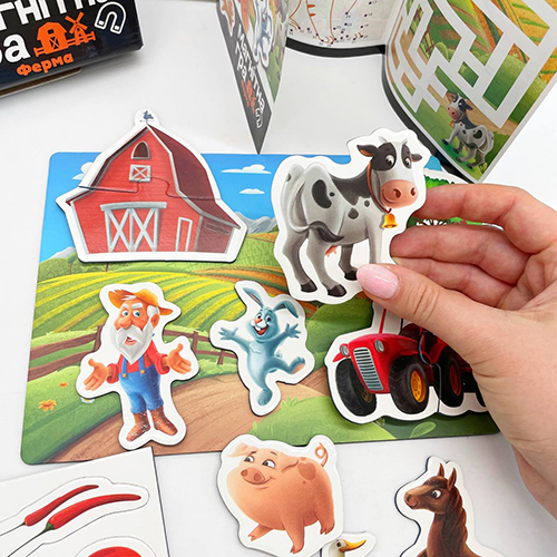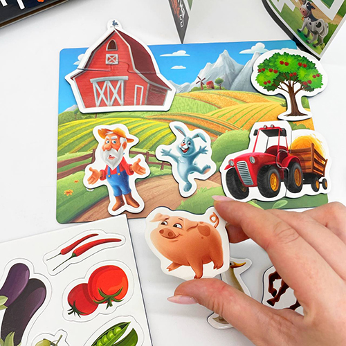 Детская настольная магнитная игра, которая погружает маленьких исследователей в увлекательный мир фермы. Каждый набор включает магнитную доску (21 х 15 см) и разнообразные магнитные элементы. Дети могут использовать эти магниты, чтобы создать свой собственный игровой сценарий. Эта игра стимулирует творческое мышление, развивает моторику и воображение детей, а также помогает им изучать окружающий мир через игру и веселье.