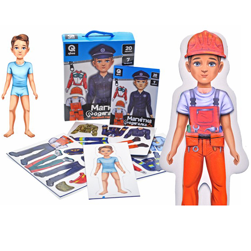 Магнитная одевалка Qbee Профессии Герои современности — играйте и познавайте мир профессий! Интересная и развивающая игра, которая знакомит ребенка с важными и современными профессиями в форме веселого переодевания. В наборе представлено 7 героических профессий, среди которых врач, пожарный, полицейский, строитель и другие. Ребенок сможет комбинировать элементы одежды и снаряжения с помощью 20 магнитов. Это не только развлечение, но и возможность узнать больше о роли каждой профессии в жизни общества.