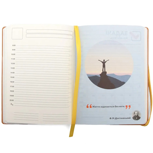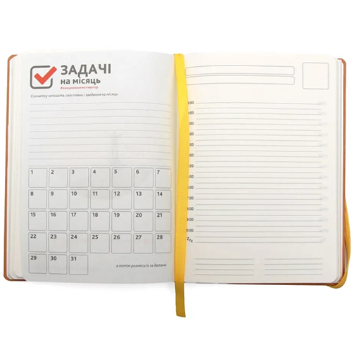 - Основной недатированный блок разделен на 12 частей листами с мотиваторами и планером в месяц.