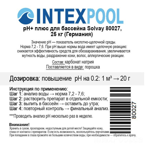 pH+ плюс для бассейна Solvay 80027. Средство для повышения уровня pH (Бельгия) 25 кг
