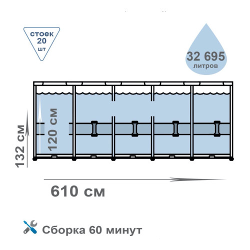 | Материал каркаса: | Коррозионностойкий, металлический каркас (оцинкованные стальные трубы с порошковым покрытием) |