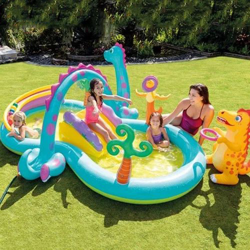 - Продуманная, оптимальная глубина, мягкое надувное дно и комфортабельные бортики позволяют использовать бассейн с динозаврами даже для самых маленьких деток, не беспокоясь об их безопасности.