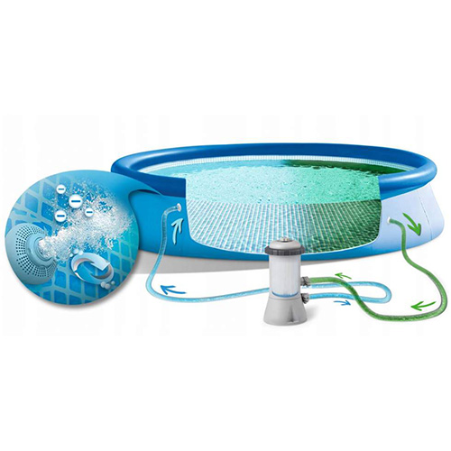 - За поддержание чистоты воды в бассейне отвечает идущий в комплекте компактный картриджный фильтр-насос (картридж тип A).