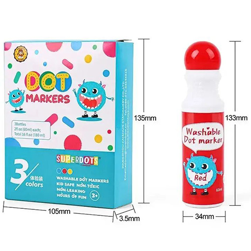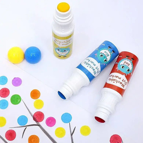 Эти маркеры недаром стали любимцами маленьких художников. Набор точечных ДОТ маркеров прекрасно подходит для раннего детского творчества, развития мелкой моторики рук, изучения новых цветов и их оттенков. Краска изготовлена на водной основе, не имеет запаха, очень легко смывается с любых поверхностей и ручек ребенка.