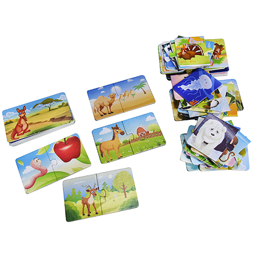 - Количество элементов каждого пазла – 2, размер картинок – 12 х 7 см, упакованы элементы в красивую коробку с ручкой.