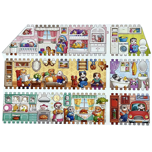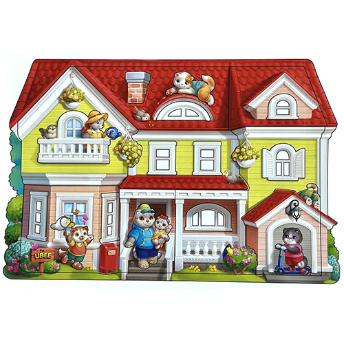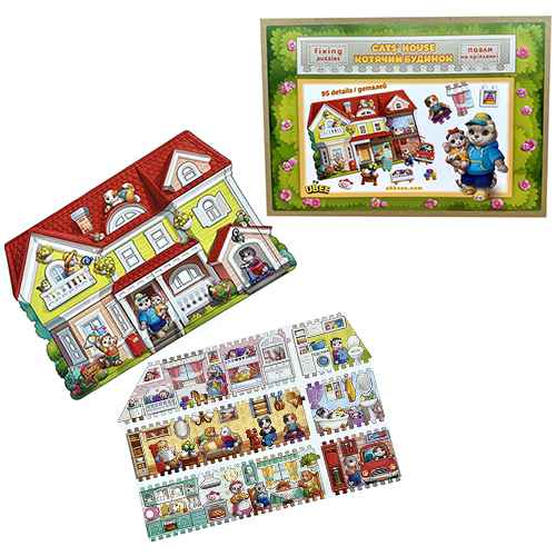 Этот детский развивающий фигурный пазл сразу привлечет внимание ребенка! «Кошачий домик» - это настоящее интерактивное приключение для любознательных малышей! Очень большой, двухслойный деревянный пазл-вкладка, который открывает маленьким исследователям интересный мир кошачьего жилища! В наборе есть вкладка-подсказка, для облегчения сборки пазла.