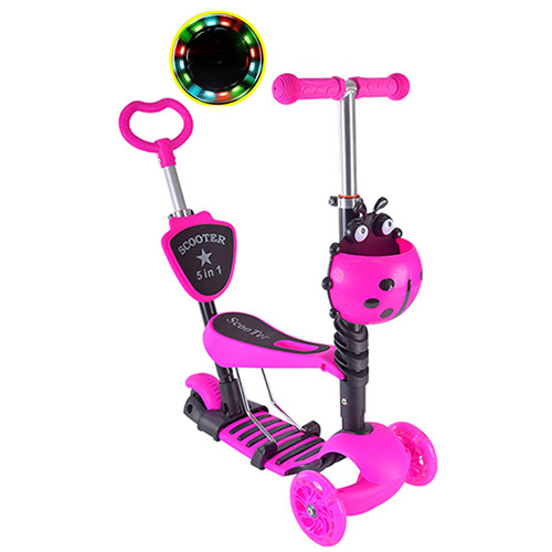 Детский самокат с сиденьем Bambi SC20139 P, со светящимися колесами (SC20139 Pink-RT)