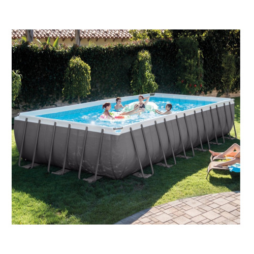 Бассейн каркасный Intex 31805 л 732x366х132 см пластик с насосом 12000 л/ч лестницей тентом сеткой и подстилкой Серый (IP-170894)