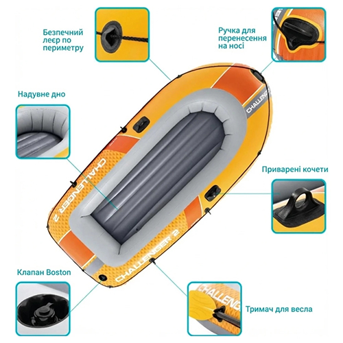 Основной товар: Двухместная надувная лодка Intex 66312 Challenger 2 Set, 236 х 114 х 41 см (весла, ручной насос). 3-х камерный