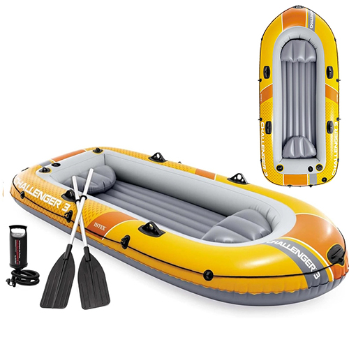 Основной товар – артикул: Трехместная надувная лодка Intex 66313 Challenger 3 Set, 295 х 137 х 43 см (весла, ручной насос). 3-х камерный