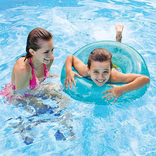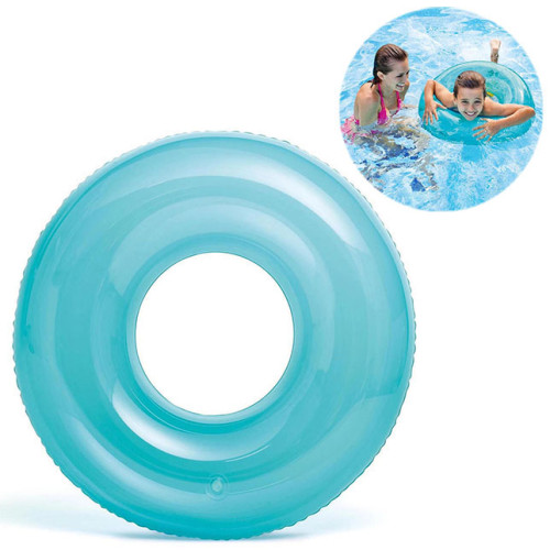 Надувной круг Intex в прозрачном голубом оттенке — легкий и универсальный аксессуар для комфортного отдыха на воде. Полупрозрачный материал придает ему свежий и аккуратный внешний вид, отлично сочетаясь с водой и создавая ощущение прохлады.