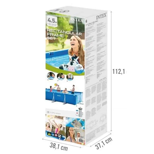 Каркасный бассейн Intex быстро устанавливается на подходящей гладкой площадке. Произведен из особого ПВХ, имеющего слой стекловолоконной сетки и 2 слоя ПВХ. Каркас бассейна защищен от ржавчины и рассчитан на достаточно высокие нагрузки. Дно снабжено сливным удобным клапаном, к которому возможно подсоединение шланга, отводящего воду в нужное место.